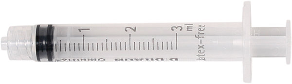 Engangssprøjter, steril plast, med indvendigt gevind, til kanyler med luerfatning, 3 ml, sterilt enkeltpakkede.