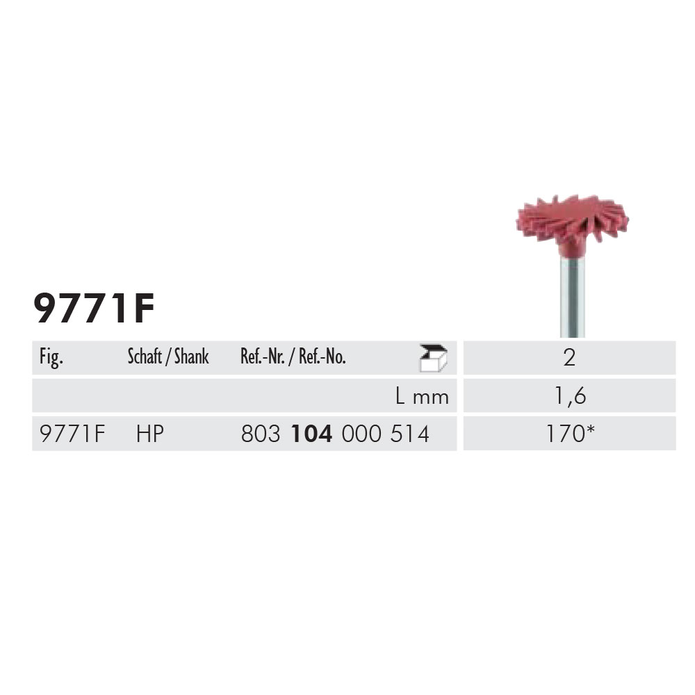 Polerere imprægneret med diamantpartikler, til polering af keramik, til HP, spiral-hjul str. 170, højde 1,6 mm, fin, rød. 803104000514170. OBS: er en del af Cerec Doctors Finishinng Kit, varenr. 9870.