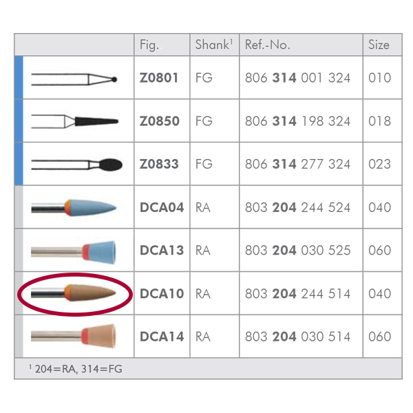 Polerere til højglans polering til zirkonium DCA10/040, rosa point, til RA, tykkelse 040. Polereren er en del af sættet LUS91.