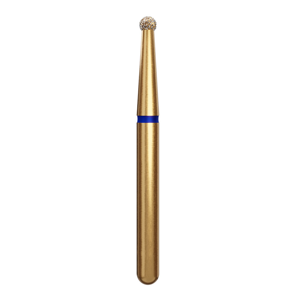 Diamantbor til præparation, til FG, medium med blå ring, 801/014 ML, kugleformet, hovedhøjde 1,4 mm.