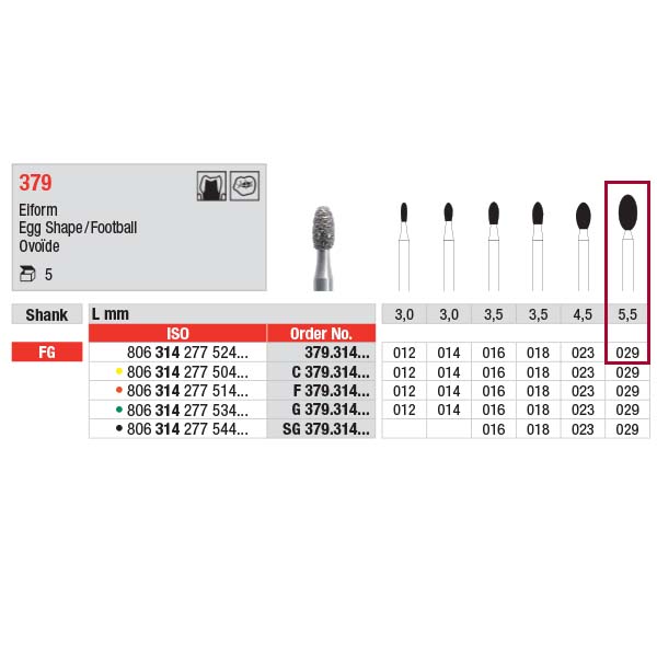 Diamant, til FG, æg-formet, længde på den arbejdende del 4,9 mm, 379/029.