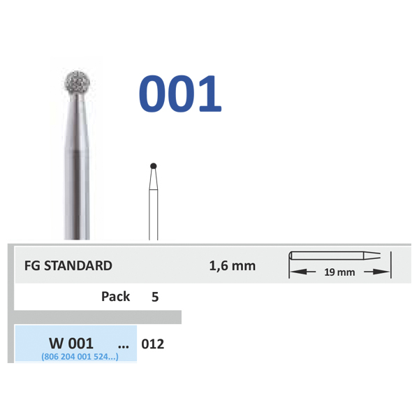 Diamantbor til præparation, til RA, medium uden ringmarkering, hovedhøjde 1,2 mm, 001/012.