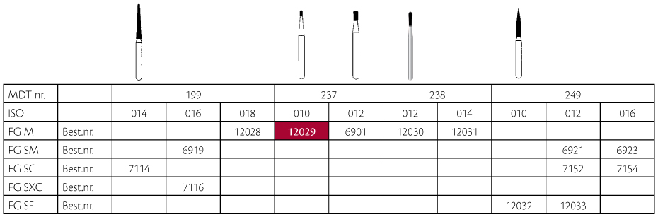 Diamantbor til præparation, pæreformet, til FG, medium med blå ring, 237/010M, længde på hovedet 3 mm.