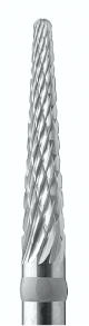 Fræser til trimning af ikke-ædelt metal og akryl, til HP, 23GX, fræser m. tværhug, m. blå ring, str. 023, hovedlængde 11,5 mm, kegleformet med afrundet top.