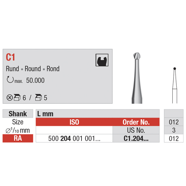 Hårdmetal rosenbor til vinkelstykke, str. 012.