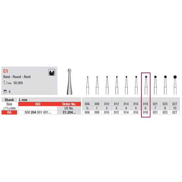 Hårdmetal rosenbor til vinkelstykke, str. 018.