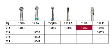 Hårdmetalbor til præparation, til RA, 31 cylindrisk med tværhug, str. 012.