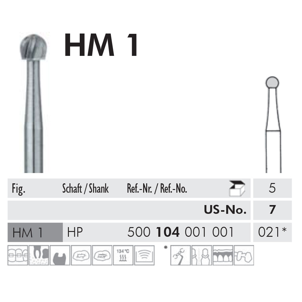 Hårdmetalbor til præparation, til HP, HM1/021, kugleformet/rosenbor/rund, hovedhøjde 2,1 mm.