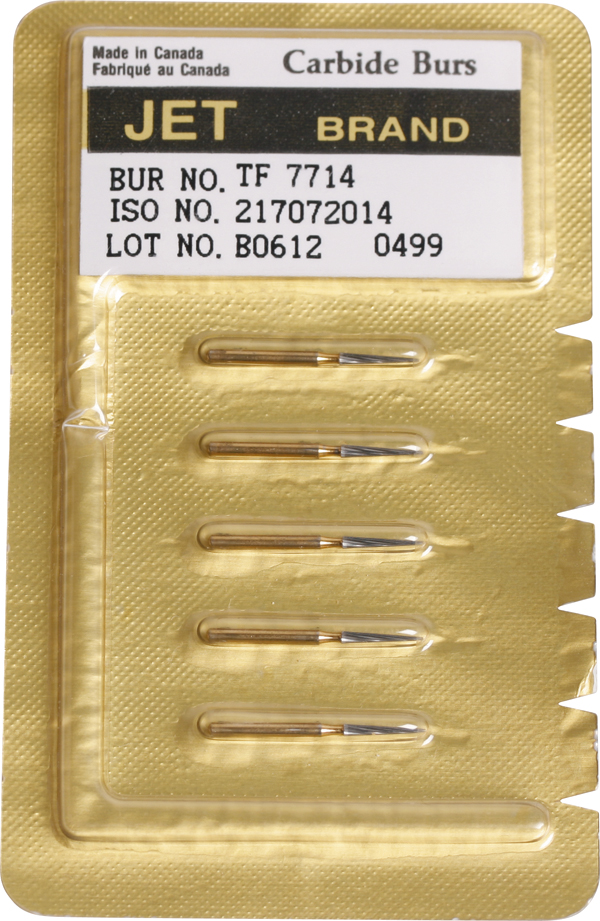 Hårdmetalbor til pudsning, guldfarvede, 12-bladede, til FG, konisk, 7714/014, hovedhøjde 7,6 mm.