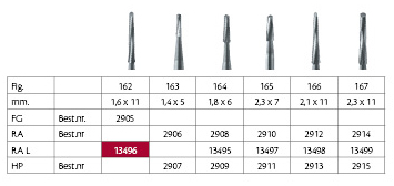 Knoglefræsere i stål, til RA m. forlænget skaft, 162, 1,6 x 9 mm.