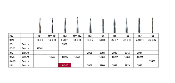 Knoglefræser i hårdmetal, til HP, 162, 1,6 x 11 mm.