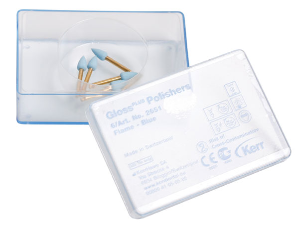 Kompositpolerere til RA, til for- og højglanspolering i et step med integrerede aluminium oxid partikler, flamme (Flame), blå.