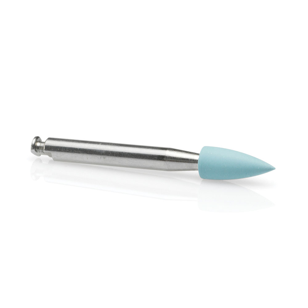 Gummipolerere imprægneret med diamantpartikler, til RA, til polering af komposit, flammeformet, HP (highpolishing) til højplanspolering, lyseblå. Kan autoklaveres.