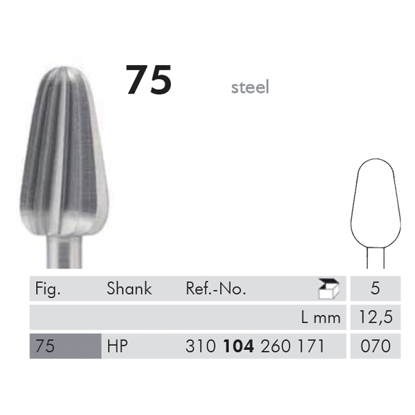 Akrylfræser i stål, omv. pæreformet, 75, til HP, str. 070.