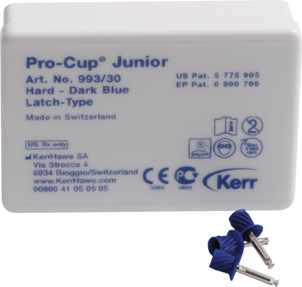 Gummikopper til profylakse, monteret til RA, nr. 993, blå, junior, spiralformede, hårde.
