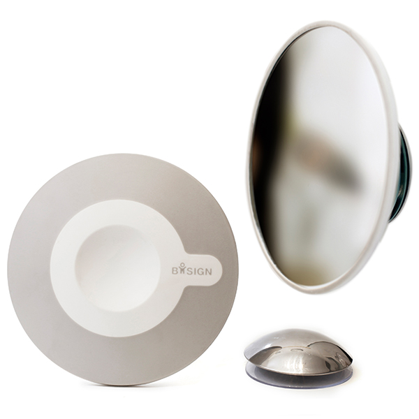 Magnetisk spejl til ophæng på væg, unit eller andre steder, med sugekop, let at justere eller tage af ophænget. Diameter 11 cm, dybde 1,5 cm. Patientspejl F LEDVIEW PLUS.