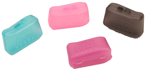 Tandbørstehætter, passer til alle TePe tandbørster samt de fleste TePe specialbørster, assorterede farver.