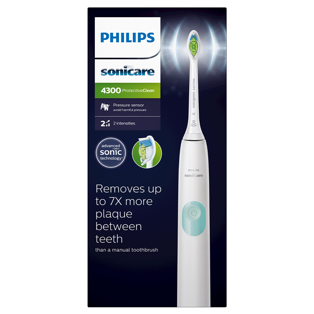 Eltandbørste, hvid, med patenteret sonisk teknologi og 1 indstilling samt 2 intensitetsniveauer, 62.000 bevægelser/minut, tryksensor samt indikation af skift af børstehoved, fjerner op til 7 gange mere plak sammenlignet med en manuel tandbørste. Med genopladeligt batteri, der holder op til 2 uger, samt fleksibelt Optimal. Plaque Defense børstehoved, der hurtigt og grundigt rengør vanskelige steder.