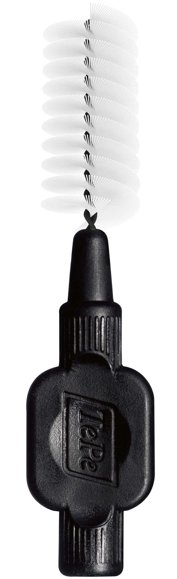 Interdentalbørster med kraftigt, bredt plasthåndtag og plastbelagt tråd, Original, sort, str. 8, 1,5 mm tråd, passage diameter 3,4 mm, cylinderformet. Fremstillet med fossilfri tallolie, hvilket reducerer CO2 aftrykket med 80%, fremstilles i Sverige med grøn energi.