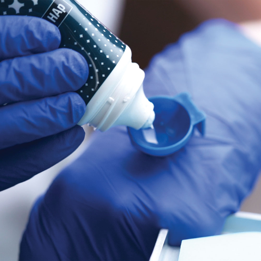 Pudsepasta til profylakse, indeholder hydroxyapatite som lægger en barriere ved at blokere de åbne dentinkanaler og hermed beskytter mod hypersensibilitet, ændrer sig fra grov til finkornet i løbet af behandlingen, med mild mintsmag, i tube. Indehol- der silica, men ingen pimpsten.
