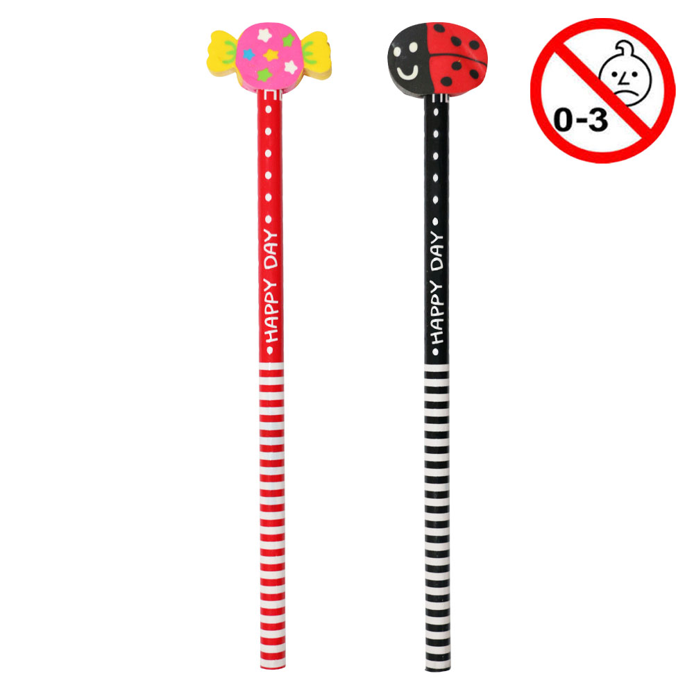 Blyant med aftageligt viskelæder i toppen, assorterede farver og faconer.