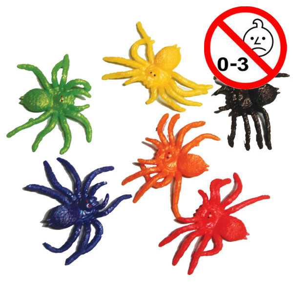 Edderkopper i blødt gummi i assorterede farver.