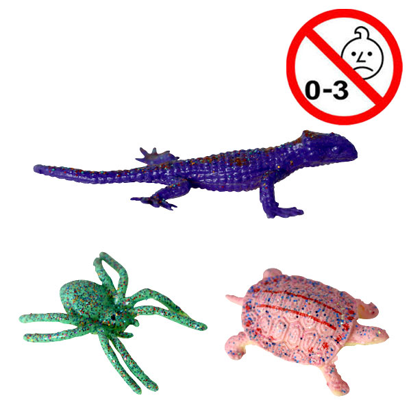 Glitter dyr i plast. Øgler og skildpadder, mange forskellige farver og former med glimmer. Størrelse fra 3,5 - 6,0 cm.