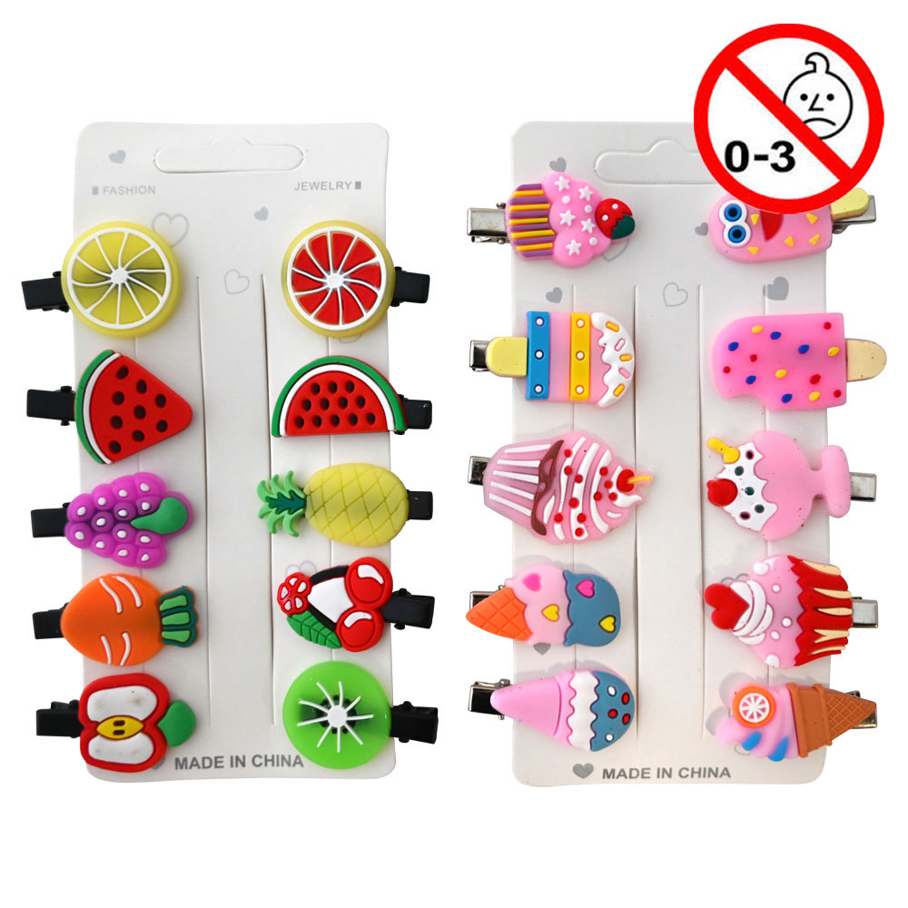 Hårspænder/clips med enten 10 forskellige stykker frugt eller 10 forskellige is.