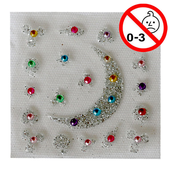 Klistermærker med glittersten, 4 forskellige ark a 9 x 6 cm. Enkeltpakkede.