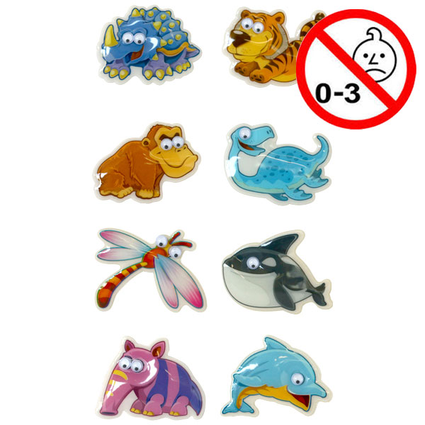 Klistermærker med dyremotiver med levende øjne. Enkeltpakkede.