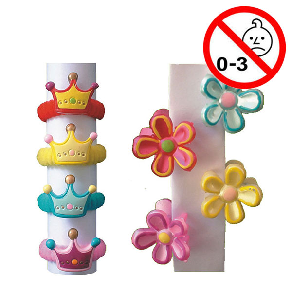 Stofelastikker med kongekroner og hårclips i plast med blomster, assorterede farver.