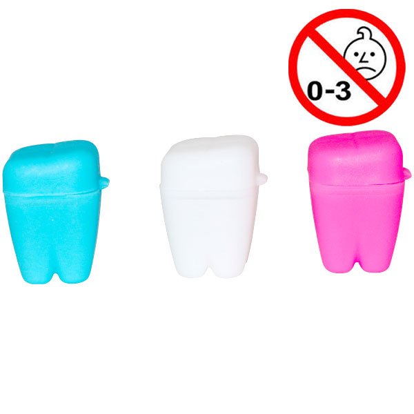 Tandbeholder i molarfacon til mælketænder. Plast, i tre farver: pink, blå og hvid, 3 cm.
