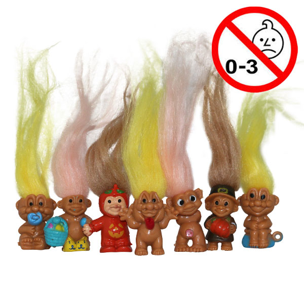 Trolde med hår og diamant, ca. 2,5 cm høje plus hårlængde.