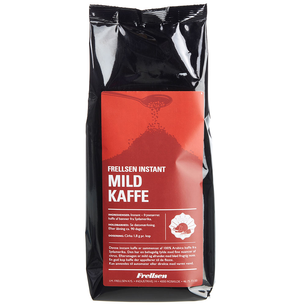 Instant kaffe, sammensat af 100% Arabica kaffe fra Sydamerika, behagelig fylde med fine nuancer af citrus, eftersmagen er mild og rund. Anvendes direkte med varmt vand.