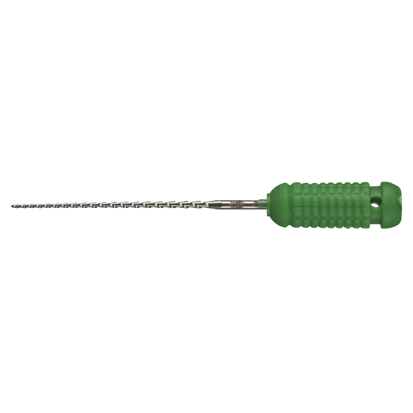 S-file, dobbeltskærende file med S-formet tværsnit og grebsvenligt skaft, 28 mm, nr. 35, grøn. Sterilt enkeltpakkede.