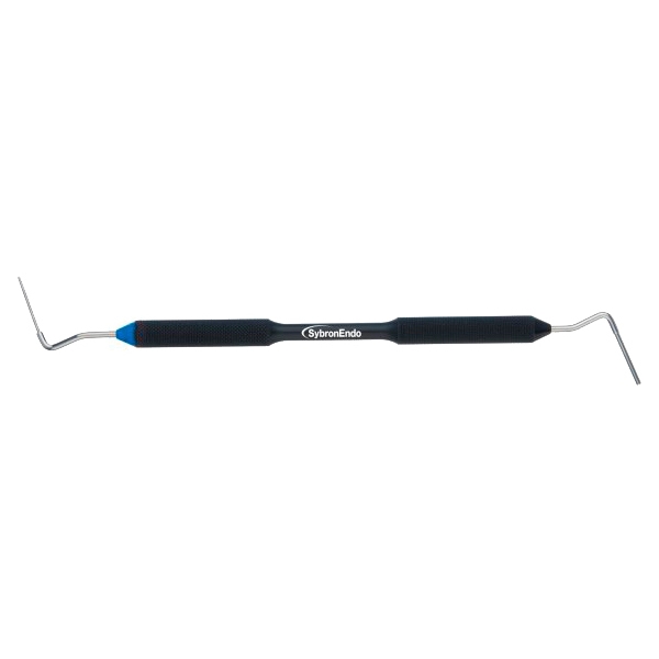 Rodstopper, Buchanan str. 2, dobbeltendet med en konisk nikkel-titanium spids i den ene ende og en rustfri stål spids i den anden, med sort skaft og blå markering.