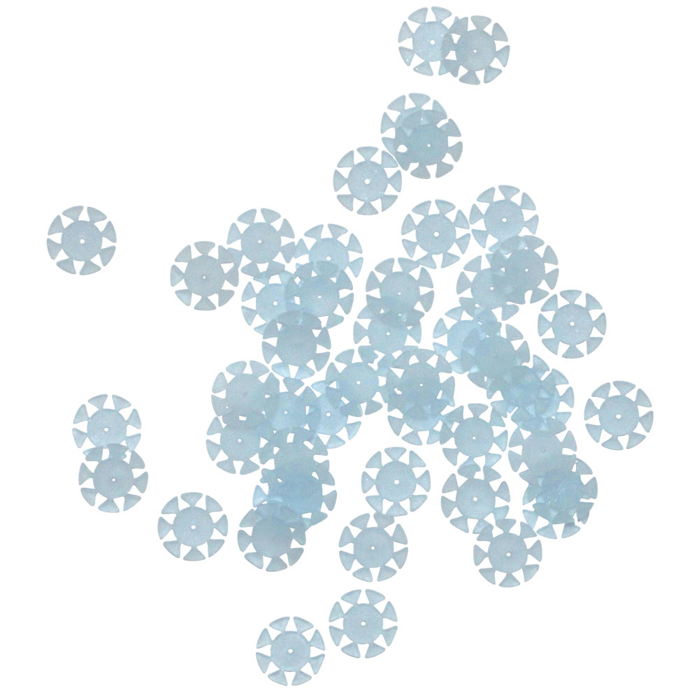Tandhjulslignende rondeller, til at sætte på rodfilene. Efter hvert brug hiver man en tand af, så man kan se hvor mange gange filen er brugt. transparent, diameter 0,5 mm.