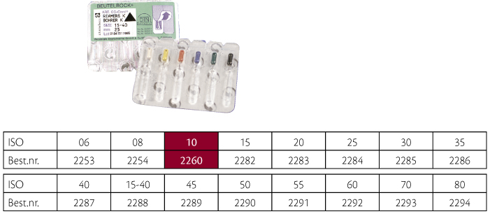 Udvidere (K-Reamers), farvekodede plastgreb, 25 mm, nr. 10, lilla. Sterilt enkeltpakkede.