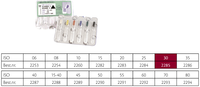 Udvidere (K-Reamers), farvekodede plastgreb, 25 mm, nr. 30, blå. Sterilt enkeltpakkede.