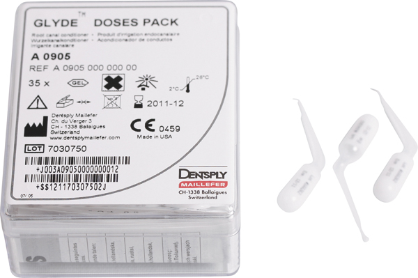 Gel til kemisk udvidelse af rodkanaler, letter den mekaniske udrensning, engangsdoser, plastpippetter med lang appliceringsspids, beregnet til at lægge materialet lige ved kanalindgangen (skal ikke presses ned i kanalen).