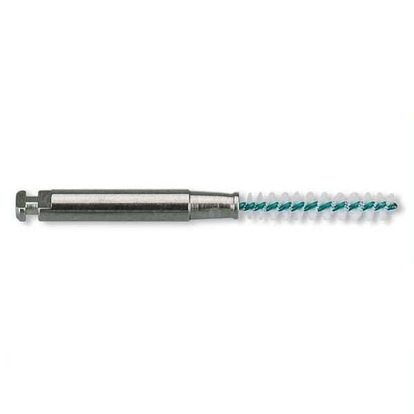 Rensebørste til vinkelstykket, anvendes til rensning og polering af alle svært tilgængelige interdentale områder, under broer, i rodkanaler etc. Kalibreret, rustfrit stål skaft.