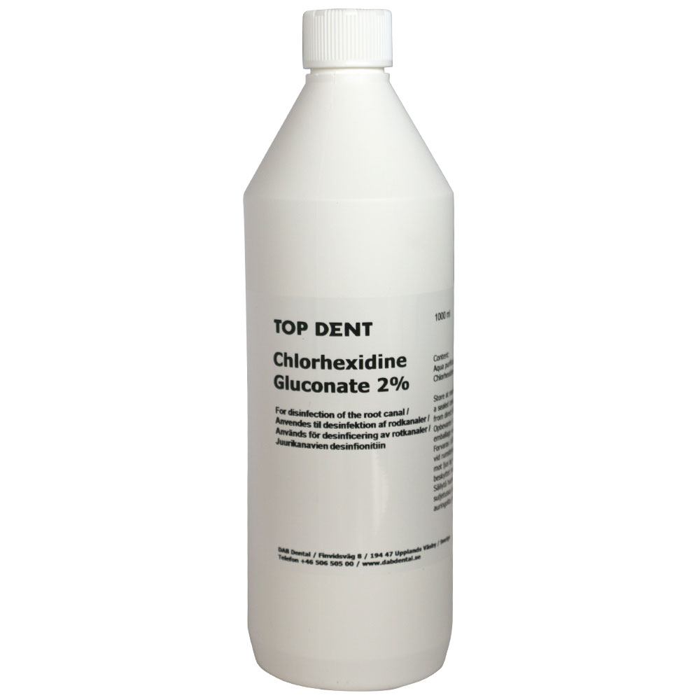 Antiseptisk klorhexidingluconat opløsning, 2%, benyttes fx som korttids desinficerende indlæg i rodkanalen ved revisionsbehandlinger og alle typer nekrosebehandlinger, kan også benyttes til desinfektion og genfugtning af præpareret tandsubstans før dentinbinding og cementering.