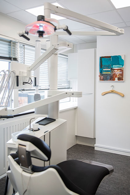 Jeg har bevidst valgt at indrette alle klinikker så ens som muligt. Det gør det lettere for personalet, at de ikke skal forholde sig til, hvor de er og hvilken stol, de arbejder ved. Arbejdsmæssigt er det en fordel, at alle stole fungerer ens, og hiver du ud i skuffe 3, er indholdet det samme uanset hvilket rum, du befinder dig i. Det giver plads til at have fuldt fokus på patienten og behandlingen, og det giver arbejdsro.”