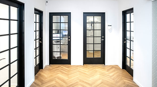 De sorte, sprossede døre er valgt for at bryde ”gang-fornemmelsen.”